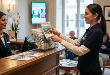 Pour une diffusion à forte valeur ajoutée, nous organisons le dépôt de vos documents dans les lieux clés du territoire : commerces, hôtels, institutions publiques ou offices de tourisme. Cette approche permet de toucher une audience très spécifique, là où elle est la plus réceptive.